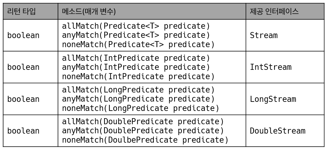 - 중간 스트림이 생성될 때 요소들이 바로 중간 처리 필터링, 매핑, 정렬이 되는 것이 아니라 최종 처리 시작되기 전까지 중간 처리는 지연 lazy 되었다가 최종 처리가 시작하면 컬렉션 요소가 하나씩 중간 스트림에서 처리되고 최종 처리까지 오게 됨