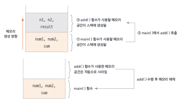구현된 함수는 호출하여 사용하고, 호출된 함수는 기능이 끝나면 제어가 반환 됩니다.
