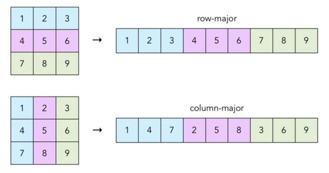 배열을 rowmajor배열로 만들기, colmajor배열로 만들기