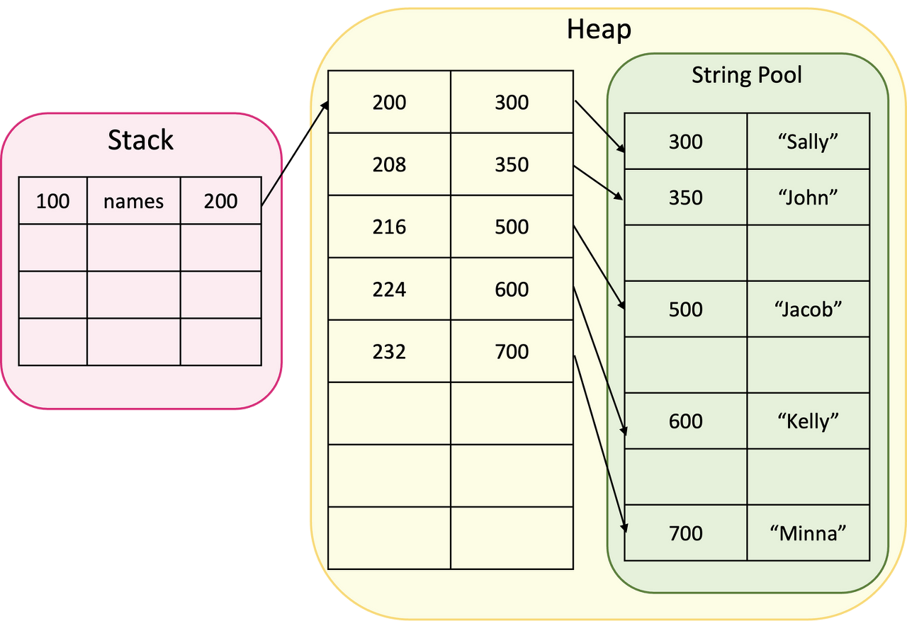 String[] names = {"Sally", "John", "Jacob", "Kelly", "Minna"};
